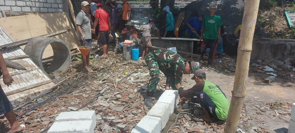 LAMONGAN (RadarJatim.id) Dandim 0812/Lamongan Letkol Arm Ketut Wira Purbawan menerjunkan puluhan personilnya di lokasi pelaksanaan RTLH yang terletak di Dusun Kruwul, Desa Sukoanyar, Kecamatan Turi, Kabupaten Lamongan, Sabtu (02/12/2023).