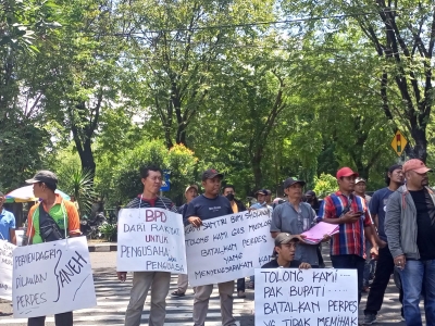 “Kami meminta Perdes yang merugikan warga dicabut. Kami juga meminta aparat penegak hukum untuk memeriksa Kepala Desa (Kades, red) Tebel,” katanya.