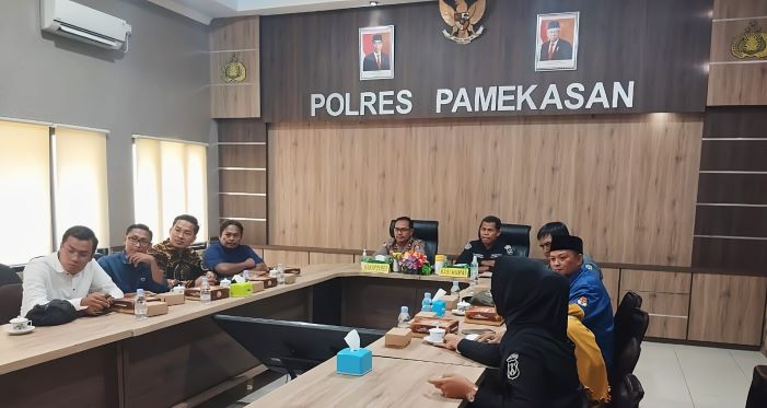 Hadir dalam kesempatan tersebut, Komisi Pemilihan Umum (KPU) Pamekasan, Badan Pengawas Pemilu (Bawaslu) Pamekasan, Dinas Komunikasi dan Informasi (Diskominfo) Pamekasan, dan sejumlah awak media Pokja Polres Pamekasan. (rus)