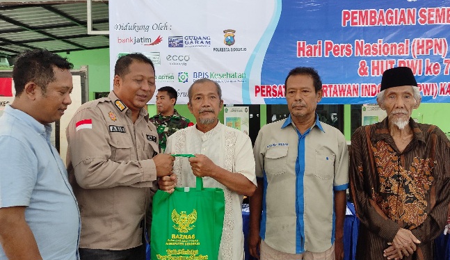 Selain itu, PWI Sidoarjo juga membagikan paket sembako bantuan dari Baznas Sidoarjo kepada warga yang mengikuti pemeriksaan kesehatan.