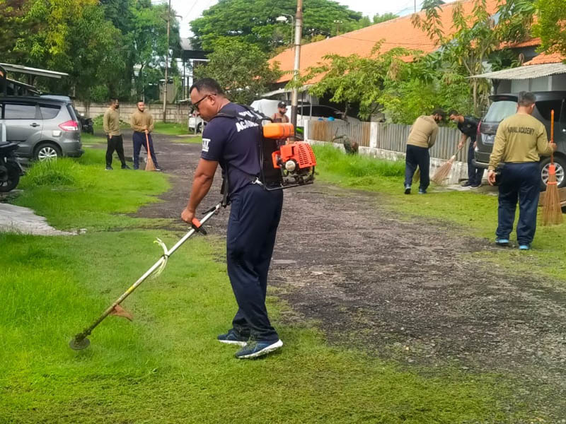 SURABAYA (RadarJatim.id) Akademi Angkatan Laut (AAL) terus konsisten jalankan Program Rabo Resik, setelah lingkungan kantor dan Markas Komando AAL secara umum tampil beda menjadi kawasan yang asri dan bersih, kini Program yang digagas Gubernur AAL, Mayor Jenderal TNI (Mar) Nur Alamsyah ini menyasar Komplek Perumahan Dinas dan Mess Dewaruci AAL yang berlokasi di Pesapen, Morokrembangan, Surabaya.