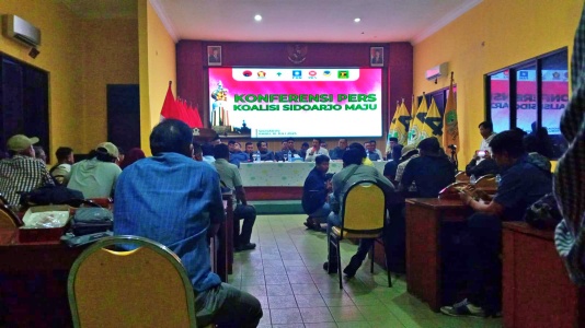 Setelah rapat paripurna di gedung DPRD Sidoarjo, para petinggi partai politik (parpol) yang terdiri dari ketua, sekretaris, bendahara serta ketua fraksi langsung menggelar konferensi pers di Kantor Dewan Pimpinan Daerah (DPD) Partai Golkar Sidoarjo.
