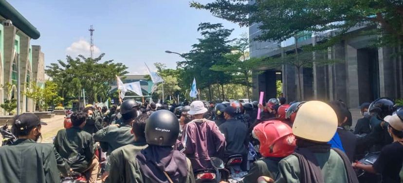 SURABAYA (RadarJatim.id) – Ratusan mahasiswa Universitas Islam Negeri Sunan Ampel (UINSA) Surabaya menggelar aksi demonstrasi, Kamis (14/4/2022) siang. Dari kampus 1 UINSA di Jalan A. Yani, mereka bergerak menuju gedung DPRD Kota Surabaya dan bergabung dengan mahasiswa dari berbagai kampus di Surabaya lainnya.