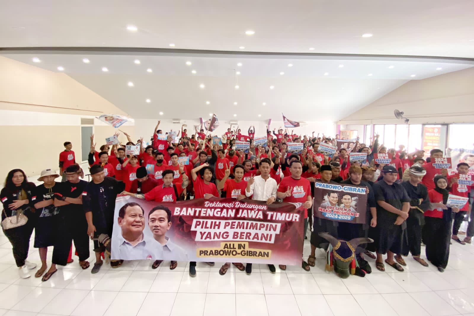 “Kami Kelompok Seniman Bantengan Jawa Timur dengan keyakinan penuh dan tekad kuat dengan tegas menyatakan setulus hati mendukung penuh dan memenangkan Pasangan Capres dan Cawapres Nomor Urut 2 Prabowo Subianto dan Gibran Rakabuming Raka pada Pilpres 2024,” kata Koordinator Seniman Bantengan Jawa Timur, Ilham Bintang saat deklarasi di Balai Pertemuan Kecamatan Junrejo, Batu, Jatim, Kamis (16/11/2023).