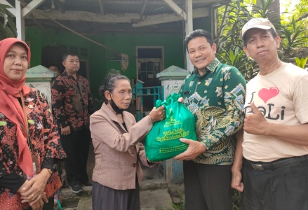 Didampingi Badan Amil Zakat Nasional (Baznas) Sidoarjo, Sekretaris Kecamatan (Sekcam) Taman dan Kades Mashudan, Wabup Subandi memberikan bantuan perbaikan rumah kepada Rahel (60 tahun) warga RT 03 RW 05, Desa Wage.