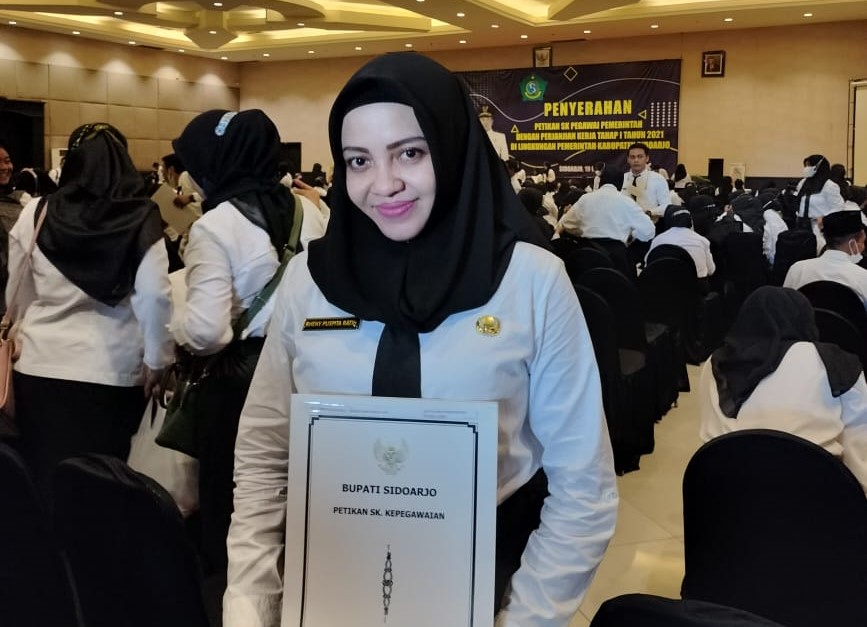 Itulah ungkapan Rheny Puspita Ratih, S.Pd Guru SDN Gelam 1 Kecamatan Candi, Sidoarjo usai menerima SK P3K (Pegawai Pemerintah dengan Perjanjian Kerja) yang secara simbolis diserahkan oleh Bupati Sidoarjo Ahmad Muhdlor Ali, S.IP pada (19/5/2022) lalu.
