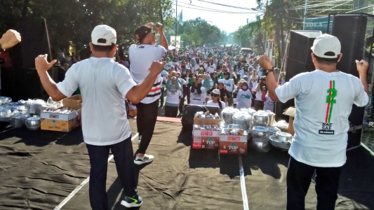 Ribuan massa ikut hanyut dalam senam ceria bersama Paslon SAE di Perumahan Taman Pinang Indah, Kecamatan Sidoarjo.
