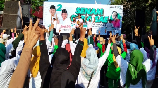 ”SAE menang menang menang. Ojo lali coblos nomor 02,” teriak Usman dan Damroni secara bergantian.