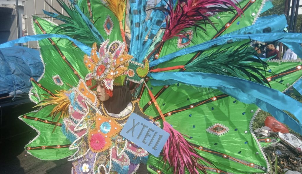 Para siswa sangat antusias mengikuti pawai Muharam yang dilaksanakan oleh SMK YPM 8 Sarirogo Sidoarjo