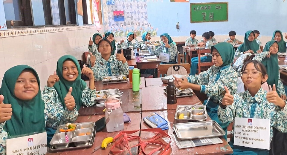“Menunya hari ini enak banget, senang bisa mengisi perut yang lapar, dan mengurangi jajan di kantin,” ungkap Jasmin kelas VII H.