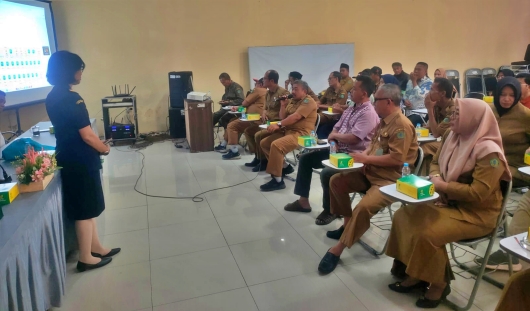 Ni Putu Muriyantini dari KPPBC Tipe Madya Pabean B Sidoarjo saat mendengarkan pertanyaan dari peserta sosialisasi penegakan hukum peredaran rokok ilegal di Kantor Kecamatan Balongbendo.