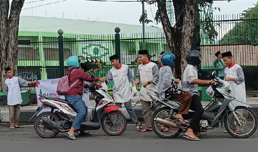 Ratusan paket takjil yang berasal dari swadaya para siswa, yakni berasal dari Infaq para santri santri SMP dan MA termasuk juga para Asatidzah tersebut, telah dibagikan pada (4/4/2023) sore di seputaran depan GOR Jalan Pahlawan Sidoarjo.