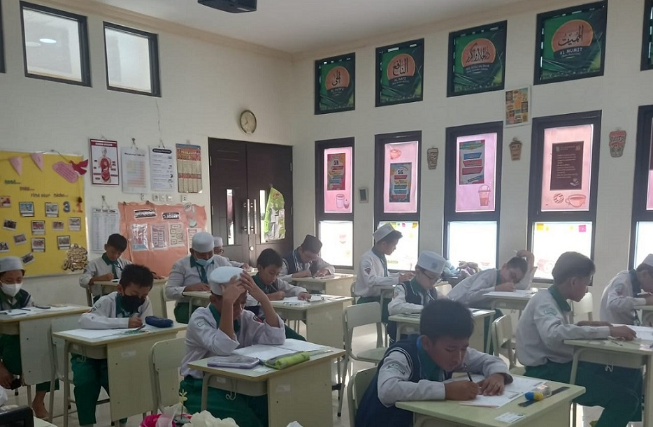 Para siswa kelas 6 SD Al Falah Darussalam antusias mengikuti ujian internasional