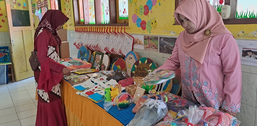 Sementara itu untuk hasta karya merupakan mix dari kelas 1 hingga kelas 6, diantaranya ada hiasan sandal, tas kanvas, ada juga lukisan di benda yang memanfaatkan kearifan lokal, yakni bahanya dari bambu, juga ada pigora. “Intinya adalah lebih kepada kreatifitas anak dan inovasi anak yang sesuai dengan perkembangan mereka. Semuanya hasil karya sendiri tanpa campur tangan orang tuanya, tanpa campur tangan guru-gurunya. Guru hanya memberikan suatu proses dan perjalanannya, dan mereka yang melakukannya,” tandas Bu_Rheny sapaan akrabnya.(mad)