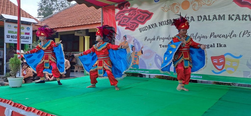 SIDOARJO (Radar Jatim.id) — SDN Gelam 1 Candi Sidoarjo terus berupaya menggali kemampuan para siswanya dalam berkarya, yang langsung ditampilkan diajang ‘Budaya Nusantara Dalam Karya’. Diantaranya kreasi seni, tari-tarian budaya dari bebarapa daerah, teater dan musik. Juga hasil karya siswa berupa hiasan hingga aksesoris.