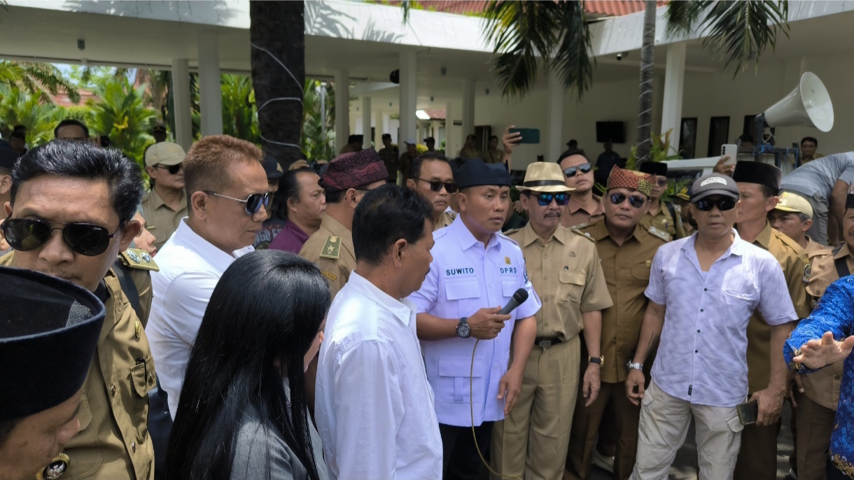 Anggota DPRD Banyuwangi tersebut adalah Suwito yang juga Ketua Fraksi Partai Gerindra. Dia dengan tegar dihadapan 189 menyampaikan permohonan maaf kepada Kepala Desa saat menggelar aksi di Kantor DPRD Banyuwangi, pada Senin 17 November 2025.