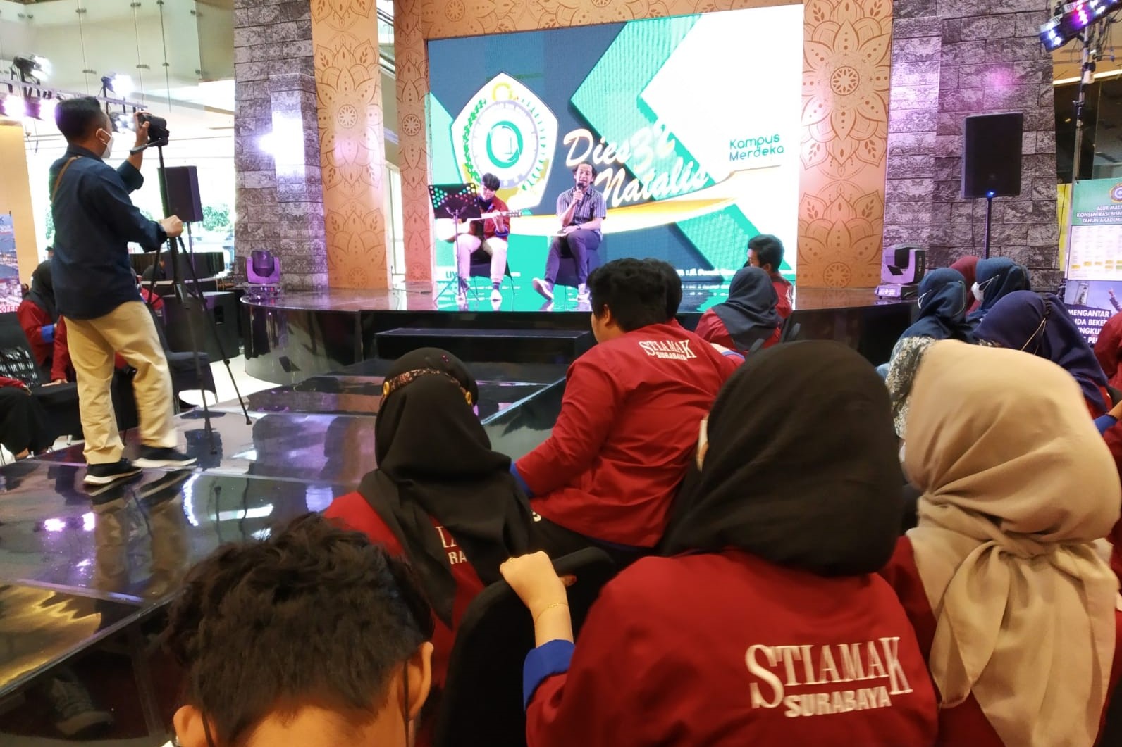 “Acara ini obat kerinduan setelah dua tahun ‘terpenjara’ akibat Covid-19. Mahasiswa dan dosen semuanya tampil bareng di Grand City selama dua hari, 23 dan 24 Juni. ‘Stiamak Academic Contest’ ini mengajak mahasiswa untuk dialog terbuka tentang bisnis. Bagi yang suka musik dan seni juga ikut tampil di sini,” kata Kepala Humas Stiamak Barunawati Surabaya, Drs Moh. Fail, MAg saat mengawal acara di Grand City Mall, Jumat (24/6/2022).