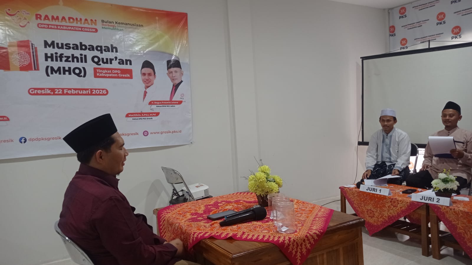 GRESIK (RadarJatim.id) — Dewan Pengurus Daerah Partai Keadilan Sejahtera (DPD PKS) Kabupaten Gresik menggelar Quran Fest yang dikemas dalam kegiatan Musabaqah Hifzhil Qur’an (MHQ), Minggu (22/2/2026). Kagiatan yang berlangsung di Kantor DPD PKS Gresik dan diikuti oleh perwakilan Unit Pembinaan Anggota (UPA) dari seluruh jenjang keanggotaan ini dalam rangka menyemarakkan bulan suci Ramadan 1447 Hijriyah.