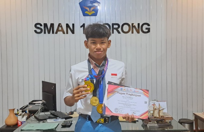 SIDOARJO (RadarJatim.id) — Mengaku senang mandi dan bermain di kali/sungai sebelah rumahnya sejak kecil. Dialah Denys Soetian Ramadhan siswa kelas X-5 SMA Negeri 1 Porong Sidoarjo berhasil meraih 16 penghargaan selama setahun di tahun 2024 dari Cabang Olahraga Renang, dari berbagai lomba dan kejuaraan.