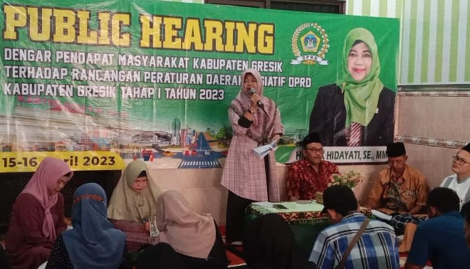 Untuk maksud itu, Hj Lilik Hidayati, anggota DPRD Gresik dari PPP menggelar public hearing di kediamannya di Kelurahan Kawisanyar, Kecamatan Kebomas, Gresik, Jawa Timur, Senin (17/4/2023). Dalam public hearing yang diikuti puluhan warga Kecamatan Kebomas dan Gresik itu, Lilik juga menghadirkan pakar hukum ketatanegaraan dari Universitas Jember, Prof Dr M. Khoidin, SH., MHum, CN untuk memberikan penjelasan kepada masyarakat seputar mekanisme dan proses pembuatan Perda.