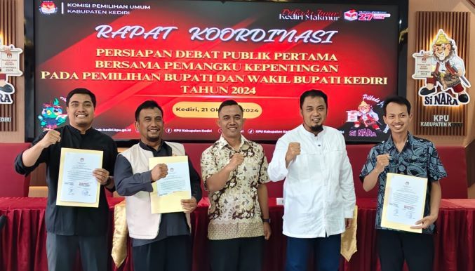 KEDIRI (RadarJatim.id) — Debat publik perdana Pemilihan Bupati (Pilbup) Kediri 2024 diagendakan pada Kamis, 24 Oktober 2024, pukul 19.00 WIB, di IKCC Kota Kediri. Persiapan yang dilakukan oleh Komisi Pemilihan Umum (KPU) Kabupaten Kediri telah mencapai 90 persen untuk memastikan kelancaran acara yang dinantikan oleh warga Kabupaten Kediri.
