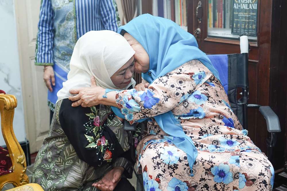 Khofifah tiba sejak pukul 12.00 kehadirannya diterima langsung, Putri pendiri KH. Abdul Wahab Chasbullah atau Mbah Wahab yakni Nyai Hj Machfudhoh Aly Ubaid. Khofifah mendapat pelukan Bu Nyai Machfudhoh yang duduk di kursi rodanya.