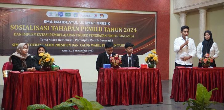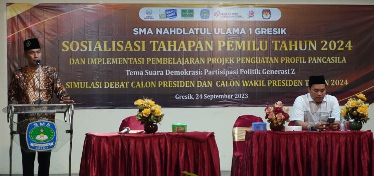 Kali ini, SMANUSA Gresik membalut sosialisasi Pemilu 2024, dengan membuat simulasi debat “Calon Presiden dan Calon Wakil Presiden” (“Capres-Cawapres”) untuk Pemilu 2024, dengan mengundang Makmun Komisioner KPU Gresik sebagai panelis.