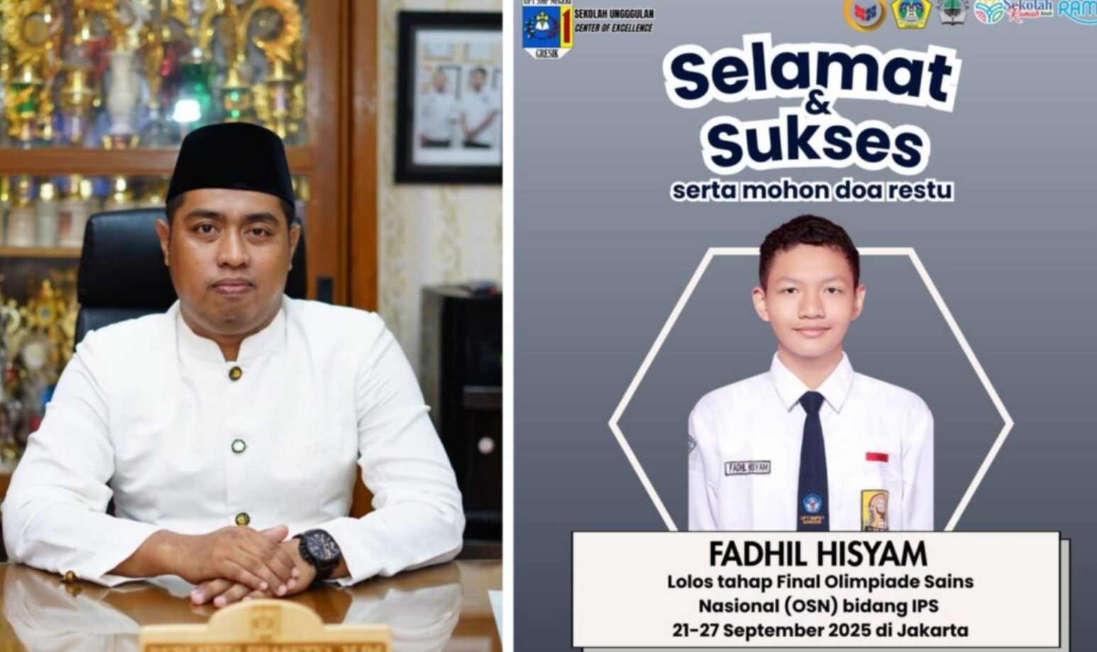 “Mohon doa restunya untuk siswa kami, Fadhil Hisyam yang mewakili Jawa Timur di tahap final Olimpiade Sains Nasional (OSN) bidang IPS. Fadhil akan berjibaku di OSN Tingkat Nasional di Jakarta yang diselenggarakan mulai tanggal 21-27 September 2025,” ujar Kepala SMPN 1 Gresik Beri Avita Prasetya, MPd, Kamis (18/9/2025).