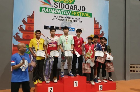 SIDOARJO (RadarJatim.id) — Siswa KKO (Kelas Khusus Olahraga) SMP Negeri 2 Sidoarjo yang menjadi atlet Bulutangkis Sidoarjo, M. Ramadhan Agus Saputra/Maulud Cesar AR berhasil menjadi juara satu dalam pertandingan Sidoarjo Badminton Festival 2025, pada (27/5/2025) di gedung Pratama Badminton Arena, Sidokare.