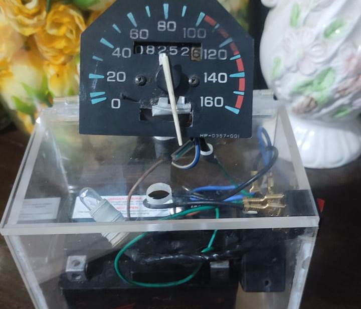 Ia katakan, judul materi yang diikutkan adalah Speelert (Speedo Alert), sebuah Inovasi Pengembangan Alarm Pendeteksi Batas Kecepatan Maksimum Pada Motor. Speelert merupakan komponen sensor yang diaplikasikan pada speedometer motor. Sensor tersebut terbuat dari potongan aluminium yang disambungkan pada flasher dan lampu sebagai alarmnya. “Speelert akan bekerja apabila diaktifkan dan ditentukan pada batas kecepatan berapa Speelert akan berbunyi,” kata siswa kelas X MIPA 7.