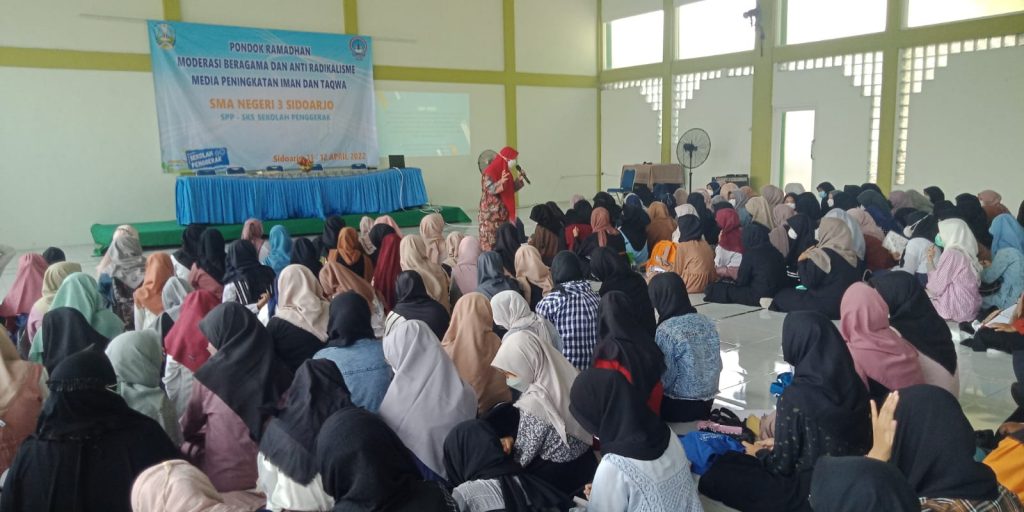 SIDOARJO (Radarjatim.id) Hadirnya bulan suci ramadhan 1443 H betul-betul dimanfaatkan oleh seluruh siswa SMAN 3 Sidoarjo untuk menjalankan ibadah yang sesuai dengan ajaran agama, sebagai momen mengendalikan diri. Sehingga  dalan kegiatan Pondok Ramadhan kali ini mengusung tema ‘Moderasi Beragama dan Anti Radikalisme’ juga sebagai Media Peningkatan Iman dan Taqwa.