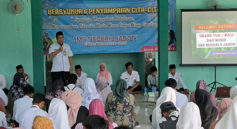 Dengan mengusung tema “Bersyukur dan Penyampaian Cita-Cita” tersebut terlebih dahulu diberi pengarahan oleh Kepala SMP Negeri 2 Jabon, Achmad Haris, S.Pd M.Pd.I pada (4/6/2025) pagi di Mushala An Nur SMP Negeri 2 Jabon Sidoarjo.