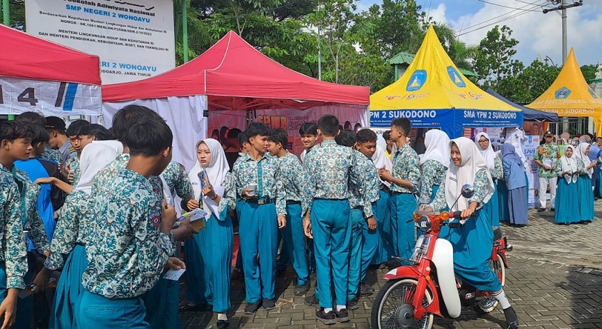SIDOARJO (RadarJatim.id) — SMP Negeri 2 Wonoayu punya cara unik dan interaktif untuk membantu siswa kelas 9 menentukan masa depan pendidikan mereka dalam memilih sekolah lanjutan. Biasanya hanya mendengarkan sosialisasi di dalam kelas, kalli ini pihak sekolah menyelenggarakan acara School Expo yang meriah dan edukatif.