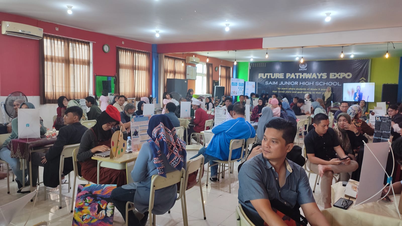 Dialog orang tua dengan ananda itu berlangsung gayeng di lantai 2 ruang Graha Mulia mulai pukul 10.30 hingga pukul 12.00 WIB. Ini merupakan kegiatan proyek akhir kelas karier yang dikemas dalam acara Future Pathways Expo 2024. Sebuah upayauntuk melakukan bimbingan rencana karier dan memantapkan tujuan (goal setting) masa depan siswa.