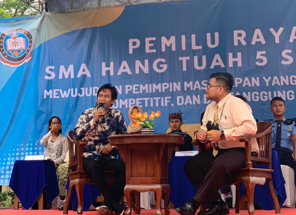 Prosesi kedua kegiatan pembelajaran berdemokrasi yang bertema ‘Pemilu Raya’ tersebut, semuanya dilakukan oleh para siswa. Mulai dari perencanaannya, pembuatan TPS dan KPPSnya serta sampai pada tim suksesnya, hingga Bawaslunya, sampai pada evaluasi. “Semuanya dilakukan oleh siswa, tentu saja dengan pendampingan fasilitator para guru. Bahkan kami juga mengundang pematerinya langsung dari Bawaslu Kabupaten Sidoarjo, Ferry Kuswanto, S.Pd I, M.Pd.I, untuk memberikan wawasan cara berdemokrasi kepada anak-anak,” tutur Kepala SMA Hang Tuah 5 Candi Sidoarjo Erni Dwiyanti, M.Pd.