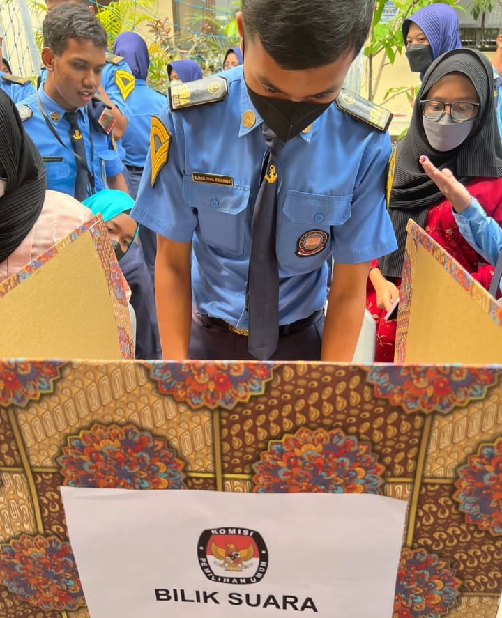 Ia uraikan kalau di sekolahnya terdapat fase E dan fase F seluruhnya ada 13 kelas dari total 20 kelas. Ada satu kelas yang bertugas sebagai Bawaslu, dua kelas sebagai tim sukses, tim sukes OSIS dan tim sukses Poltar. Kemudian darin10 kelas lainnya sebagai Tim KPPS atau Tim Penyelenggara TPS, kelas-kelas yang lainnya bagian pemilik suara/pencoblosannya.