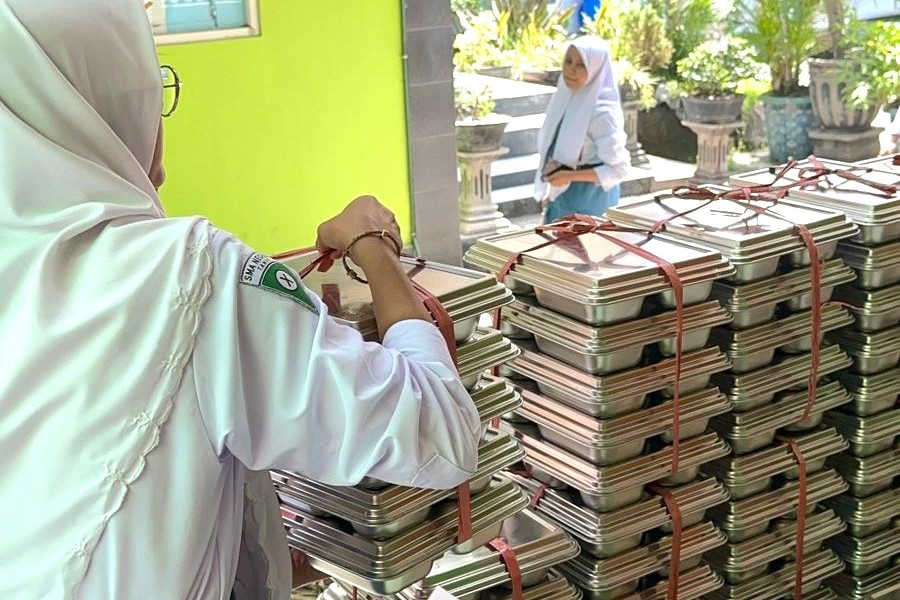 SIDOARJO (RadarJatim.id) — Ribuan siswa SMA Negeri 1 Taman sangat antusias dan merasa senang menikmati realiasi program Pemerintah MBG (Makan Bergisi Gratis) yang sudah mulai berjalan, pada (25/8/2025). Karena bisa berhemat, yaitu menghemat uang saku, perut bisa terisi tanpa mengeluarkan uang lagi.