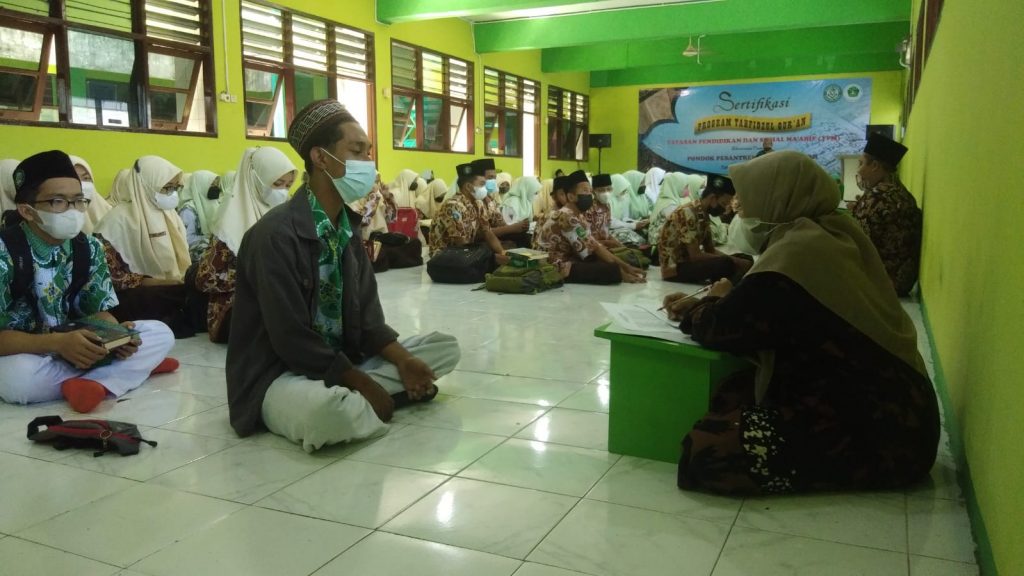 Ali Ibrahim sedang mengikuti ujian sertifikasi Tahfizhul Qur’an Juz 1-20 dan Juz 29-30 dengan penguji dari Ponpes An Nidhomiyah Sepanjang Sidoarjo