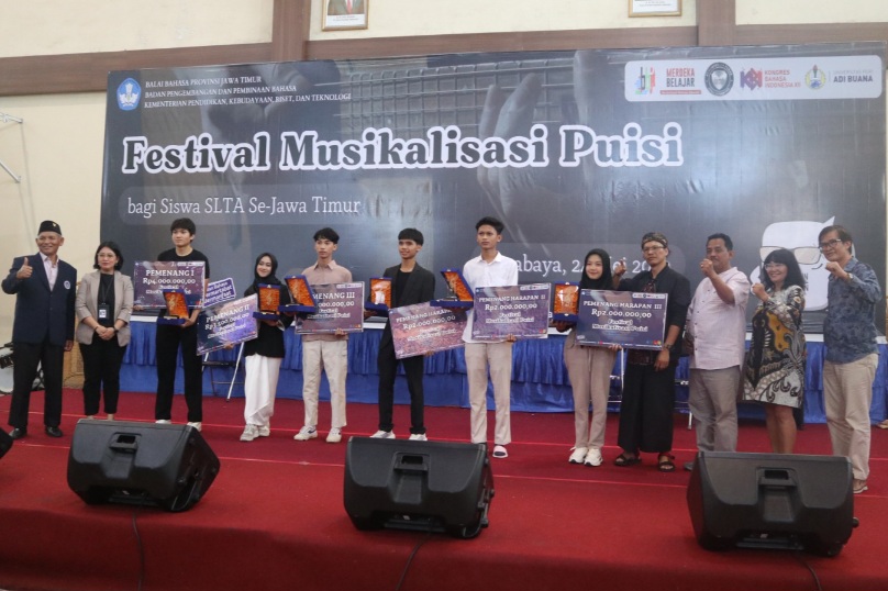 SURABAYA (Radarjatim.id) –Sebagai wujud apresiasi bangkitkan sastra secara masih, khususnya bagi para pelajar. Sekitar 30 tim dari perwakilan sekolah jenjang SMA/SMK se Jawa Timur telah mengikuti lomba Festival Musikalisasi Sastra 2023, yang digelar oleh Balai Bahasa Jawa Timur, pada (24/5/2023) siang, di Ruang Gelora Hasta Brata Universitas PGRI Adi Buana Surabaya.