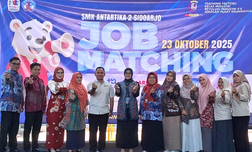 Proses rekrutmen dilakukan secara bersama-sama digelar dalam Job Matching, yang dibuka oleh Kepala Dinas Tenaga Kerja Sidoarjo Ainun Amalia, S.Sos pada (23/10/2025) pagi, didampingi Kepala SMK Antartika 2 Sidoarjo Retno Purwosulystiorini, S.Pd M M.Pd serta hadir pula Ketua FBKK (Forum Bursa Kerja Khusus) SMK Kabupaten Sidoarjo, Ahmad Robby, S.Kom