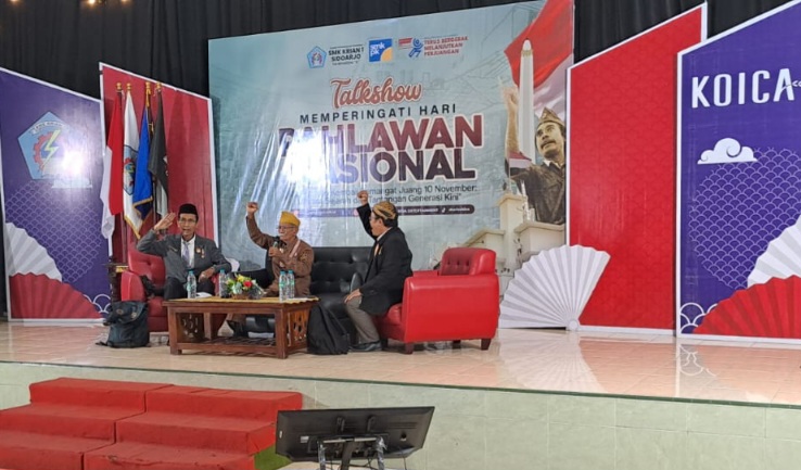 “Jadi remaja seusia kalian semua, anak-anak muda semuanya,” ceritanya sambil menunjuk para siswa SMK Krian 1 Sidoarjo yang mengikuti acara yang dikemas dalam ‘Talkshow Memperingati Hari Pahlawan Nasional,” pada (13/11/2025) pagi.