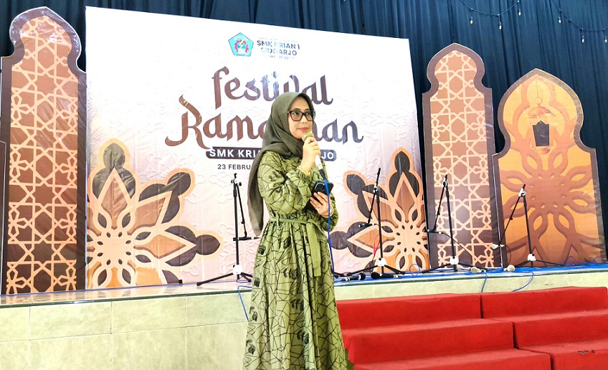 Sebelum dimulai Festival Ramadan 1447 H’ dibuka terlebih dulu oleh Kepala SMK Krian 1 Sidoarjo Dhini Mekarsari, S.Pd M M.Pd pada (23/2/2026) di Aula SMK Krian 1 Sidoarjo.