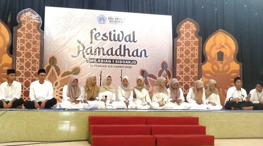 SIDOARJO (RadarJatim.id) — Menarik, kegiatan Pondok Ramadan di SMK Krian 1 Sidoarjo tidak hanya diisi dengan rutinitas pada umumnya, namun juga diisi dengan kegiatan-kegiatan yang bisa membuat para siswa senang dan menyalurkan bakatnya, yakni ‘Festival Ramadan 1447 H’.