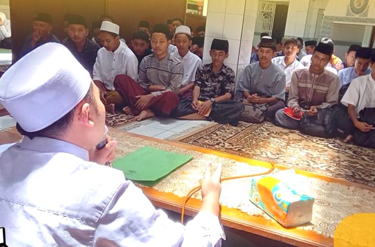Para siswa SMK Krian 1 Sidoarjo sangat antusias penuh makna saat mengikuti tausiyah dari para Kyai