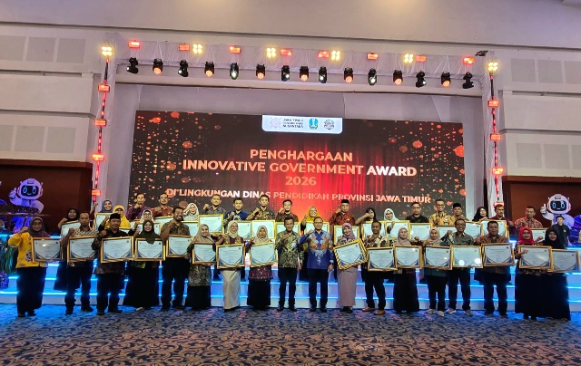 Prosesi penyerahan penghargaan diberikan langsung oleh Kepala Dinas Pendidikan Provinsi Jawa Timur Dr. Aries Agung Paewai, STP MM pada (12/2/2026) di Grand City Surabaya.