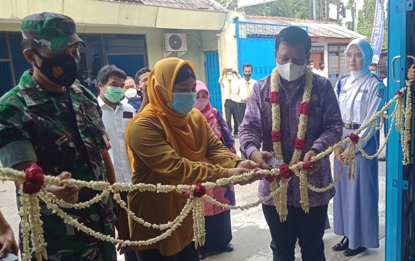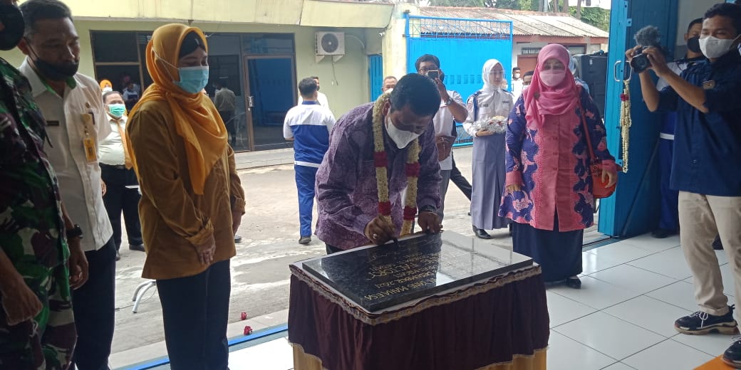 Kepala Cabang Dinas Pendidikan Jatim Wilayah Sidoarjo-Surabaya menekan bel peresmian Tefa SMK Senopati.