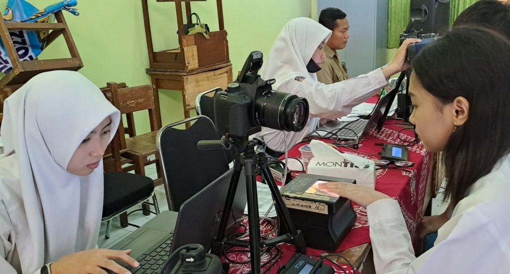 Para siswa SMK Negeri 2 Buduran sedang melakukan perekaman, mulai pemotretan, deteksi iris mata dan sidik jari