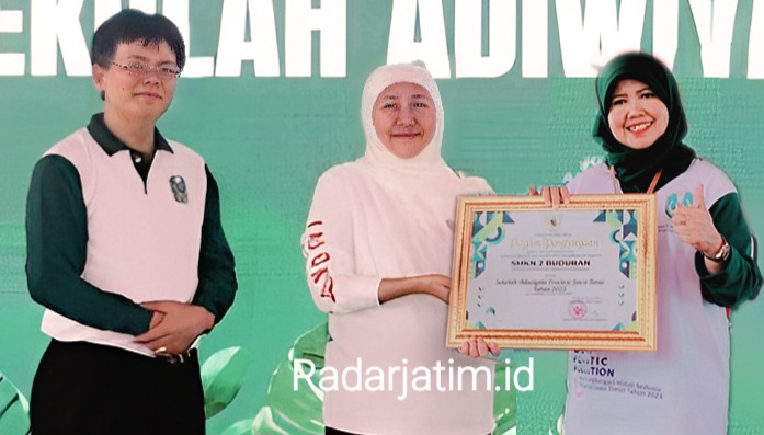 SIDOARJO (RadarJatim.id) — Berkat kerjasama yang kuat dan kompak serta inovasinya dalam membangun lingkungan. SMK Negeri 2 Buduran Sidoarjo berhasil meraih penghargaan dari Gubernur Jawa Timur sebagai Sekolah Adiwiyata Provinsi Jawa Timur 2023. Satu-satunya SMK di Wilayah Sidoarjo yang meraih penghargaan tersebut.