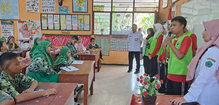 Kader Adi Wiyata SMP Negeri 1 Sedati sedang mengkampanyekan Konvervasi Energi di salah satu kelas SD Sedatiagung Sidoarjo