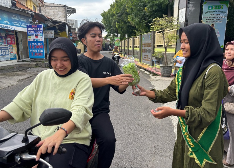 Selain itu juga untuk menciptakan iklim lingkungan sekolah yang kondusif, bersih dan nyaman. “Giat menuju Adiwiyata Nasional 2025, SMP Negeri 4 Sidoarjo panen Slada Hidroponik sekaligus dibagikan sebagai takjil Ramadan 1446 H,” tuturnya.